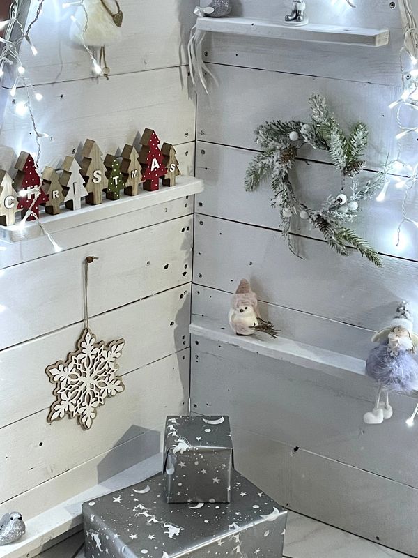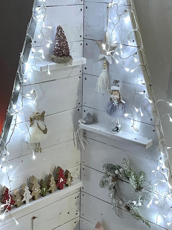 The Christmas Tree is handcrafted using recycled timber and finished with a white wash chalk paint to provide a rustic look.