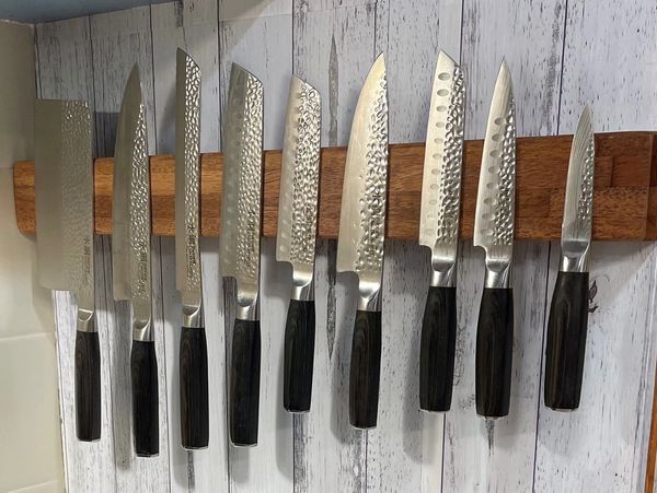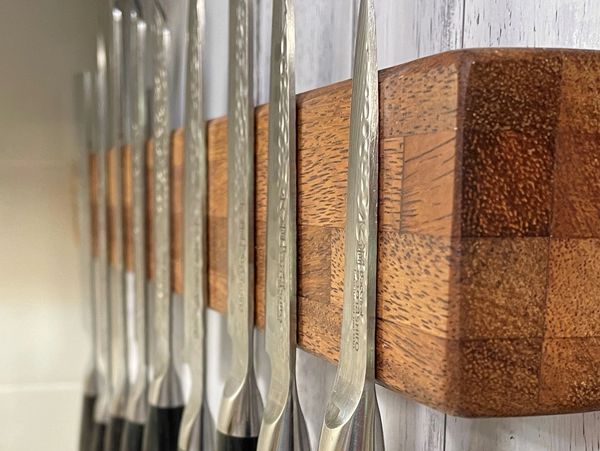 The magnetic knife holder is made to order. A non-refundable $50 deposit is requested to commence your order & balance is payable upon collection.